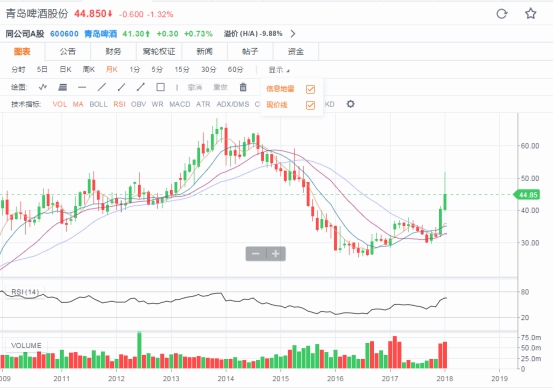 啤酒集体涨价的价格联盟给规模触顶、利润“微薄”、急盼升级的啤酒行业带来一剂强心针,啤酒股的集体大涨理所当然。但需要注意的是,未来啤酒股至少面临三个风险: 进口啤酒增长较快,挤压国产品牌空间,同时还面临白酒、葡萄酒、洋酒等其他酒种的竞争。 净利润率不如其他酒种。 啤酒主力消费人群为15-44岁人群,老龄化的人口结构趋势长期埋下隐忧。 总体而言,青岛作为啤酒大厂,一方面有良好的产品结构和市占率,在行业整合中有一定优势,但另一方面未来也可能出现改善前景不及预期、行业需求继续萎靡等情况。 但既然啤酒行业已经达成了价格联盟,打响了18年消费品涨价第一枪。同时,2018年6月-7月将迎来世界杯,作为球迷看球必备的啤酒,二季度、三季度一般都是啤酒的消费旺季,叠加体育赛事等多重利好共振,青岛啤酒股份其后续依然值得保持关注。 |