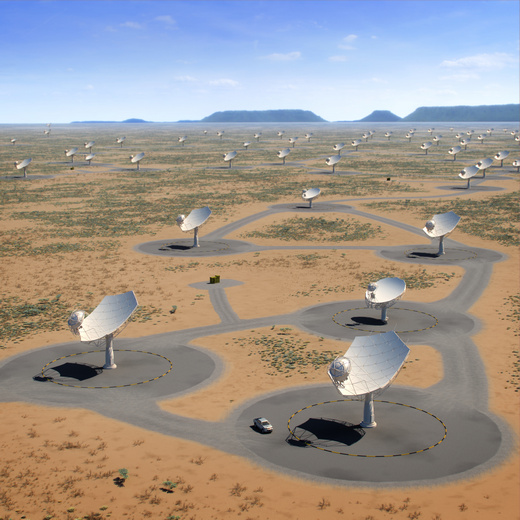SKA天线阵列示意图 SKA-P启动,SKA工程进入建设阶段 王枫介绍,SKA-P启动后,下一步, SKA工程将进入建设阶段。 SKA建设包括SKA1和SKA2两个阶段,SKA1建设阶段项目总投入约6.74亿欧元,预计在三年左右建成130台天线,该阶段为试观测阶段,为SKA2大批量生产奠定工程技术、科学观测等基础。 目前,SKA各成员国正在协商出台SKA天文台公约。据了解,SKA1建成后,各成员国可以按照出资情况和贡献度按比例获得一定的观测时间,可以共享SKA获得的各项原始数据。 SKA横跨两个大陆,其最长基线距离是3000公里,基线越大,望远镜的分辨率越高,观测就越精细,“绘制”的宇宙“图景”也更有价值,更让人期待。 “它将探测宇宙、星系的起源和演化,寻找更多的星系,探寻孕育生命的新摇篮、搜索外星生命等。它还将致力于揭示和回答关于‘基本力’问题。比如,检验爱因斯坦的广义相对论正确与否;探寻宇宙磁场从哪里来,怎么演化的。”54所SKA反射面天线总设计师杜彪告诉记者。 “SKA‘看’得更远,‘看’得更清楚,必定会发现更多的天外星系,为人类带来很多意想不到的科学发现,一定会极大地推动我国天文、物理及信息技术等相关领域的研究水平,提高我国在国际上的影响力和地位。”杜彪说。 |
