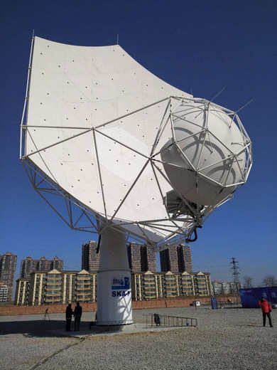 SKA首台天线 人民网北京2月6日电(赵竹青)由我国主导研制的国际大科学工程“平方公里阵列射电望远镜”(SKA)首台天线(SKA-P)今日在中国电子科技集团公司第54研究所启动。 下午3点15分,一声“启动”,SKA-P在10米高的底座上,缓缓转动反射体,犹如一只机敏灵活的“大耳朵”,俯仰之间,从15°到90°,缓缓扫过天际;水平转动,左右270°,从容巡视天空。 “它的成功研制,标志着中国在SKA核心设备研发中发挥引领和主导作用,在国际大科学工程中,为世界成功提供‘天线解决方案’。”中国电科总经理刘烈宏说。 SKA:人类有史以来建造的最庞大天文设备 SKA始于上世纪九十年代初,是国际天文界计划建造的世界最大综合孔径射电望远镜,也是人类有史以来建造的最庞大天文设备。它是多国合作、共同出资的国际大科学工程。全球约20个国家上百个大学和科研机构的天文学家和工程师参与项目研发。 SKA项目也是继中国参与热核聚变项目之后,参与的第二个国际大科学工程。 SKA选址在澳大利亚、南非及非洲南部8个国家的无线电宁静区域, 将在约3000公里的广袤荒野中,建设2500面15米口径反射面天线。组成阵列的射电望远镜总接收面积达一平方公里,相当于140个足球场大。 “SKA的建设将为现有工程技术和研发水平带来质的飞跃,颠覆人类对宇宙和基本物理定律的理解。”SKA天线工作包联盟主席、中国电科SKA办公室副主任、54所专家王枫介绍。 王枫说,灵敏度和巡天速度是射电望远镜非常重要的两个指标。灵敏度越高,天线“看”得就越远,探测宇宙的能力就越强;巡天速度越快,天线“扫描”和“观测”同一天区的速度就越快,天线的工作效率就越高。SKA将成为地球上最大、最先进的科学设施,比目前最大的射电望远镜阵列——美国EVLA的灵敏度提高50倍,巡天速度提高10000倍。据专家估计,建成后的SKA,其性能在本世纪至少保持30-50年的领先地位。