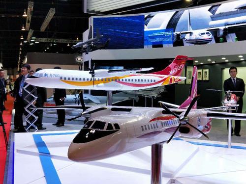 航空工业集团在新加坡航展上展示的“新舟”700飞机模型