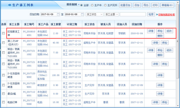 传统的车间生产派工管理,只能单个单据逐一处理,一旦遇到大量派工需求,一条一条进行,效率之低难以想象,很多宝贵时间就这样被白白浪费。在智邦国际erp系统中,大量重复性工作,通过一键批量操作就能轻松搞定。比如,通过批量添加,可以一次生成大量派工单。而选择目标单据,点击批量质检、计件、登记或删除等按钮,系统就会自动完成对应操作,实现前后环节自动流转,用一键批量操作,代替没完没了的繁琐人工和手工,让派工操作一步到位,业务流转效率立竿见影。