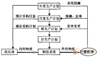 在上述计划体系中,月度生产计划是起核心作用的,一般要提前3个月制定的,因为在海外调运的物料提前期较长,要求3个月之前发给供应商。但每次制定3个月的计划,采取滚动式计划编制方法,根据营销部门给出的后3个月的预测及定单数据,在3个月之前制定一个季度分月的生产计划,到第1个月到来前再次发送确定的月度计划;在此基础上每周再根据定单的变更数据确定周生产计划及确定的采购信息,而且要提前2周用电子采购系统传递给供应商。