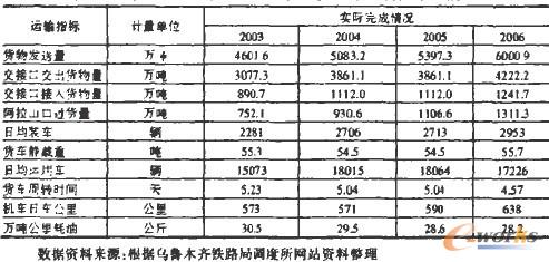 表1. 乌局2003年-2006年主要运输指标完成情况